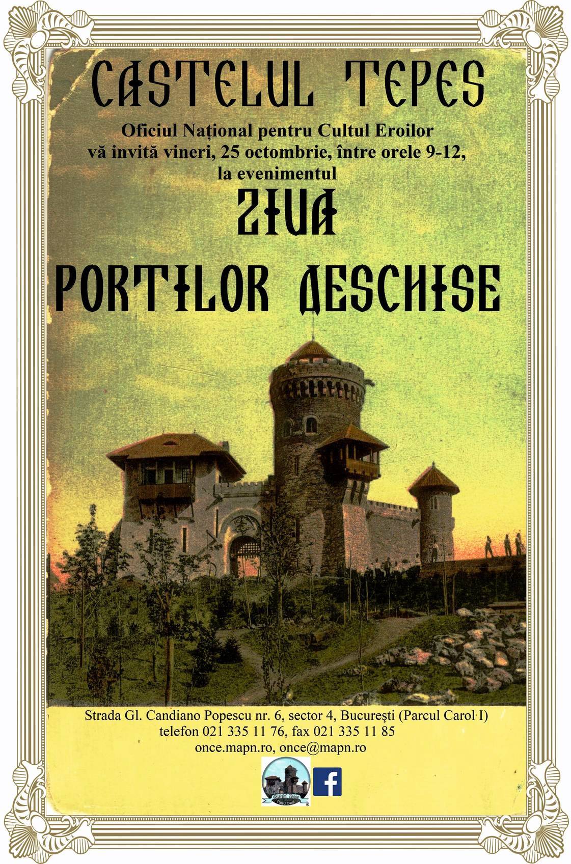 Cu prilejul Zilei Armatei României, în data de 25 octombrie 2019, între orele 09.00 şi 12.00, Oficiul Naţional pentru Cultul Eroilor organizează Ziua Porţilor Deschise la Castelul Ţepeş, prilej de a marca împlinirea a o sută de ani de la instituţionalizarea domeniului cultul eroilor în România, prin înfiinţarea Societăţii Mormintele Eroilor Căzuţi în Război.