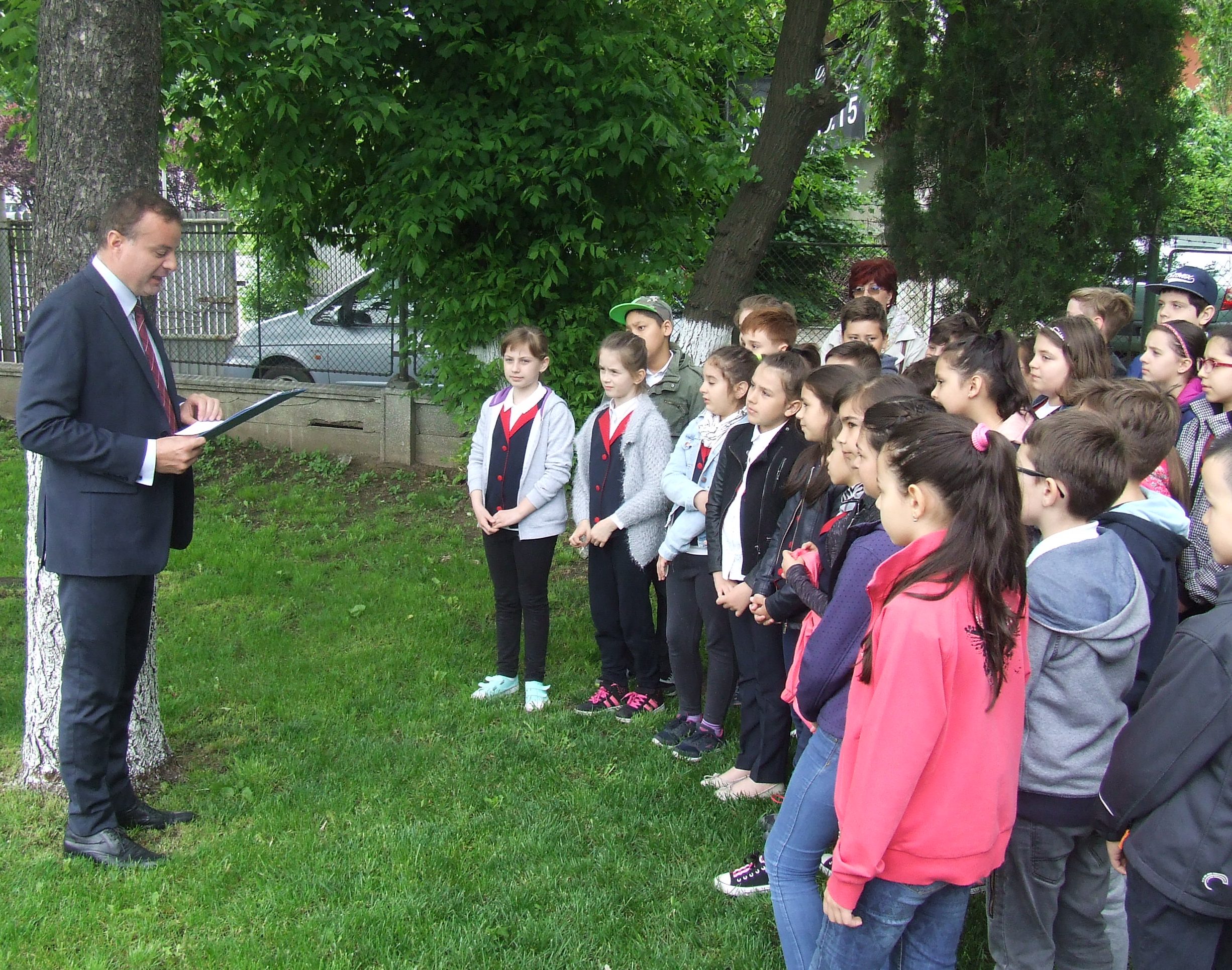 În semn de recunoștință față de jertfa eroilor în memoria cărora este ridicat monumentul, elevii au adus și au plantat flori albe și roșii în zona de protecție a operei comemorative.