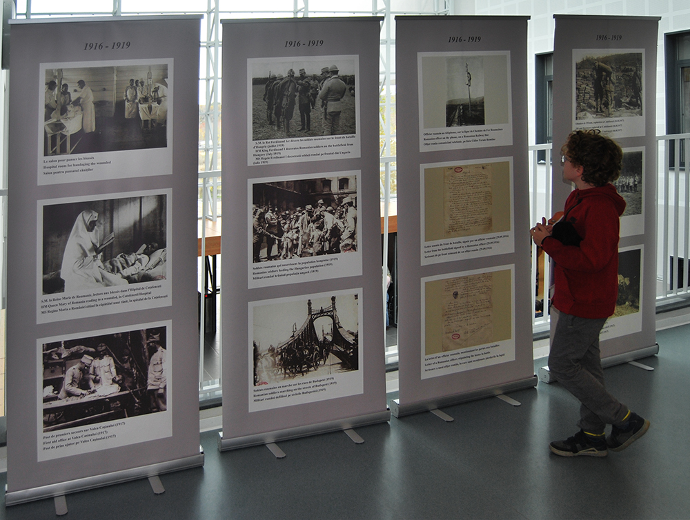 Beneficiind de prezența în cadrul Liceului Francez din București a expoziției de fotografii menționate, elevii doamnei profesor Simona Radu vor lucra în acest an la realizarea unui fotoreportaj, care va aborda teme ale Marelui Război, precum: Armata română, generalul Berthelot, bătăliile cheie, situația din spatele frontului etc.