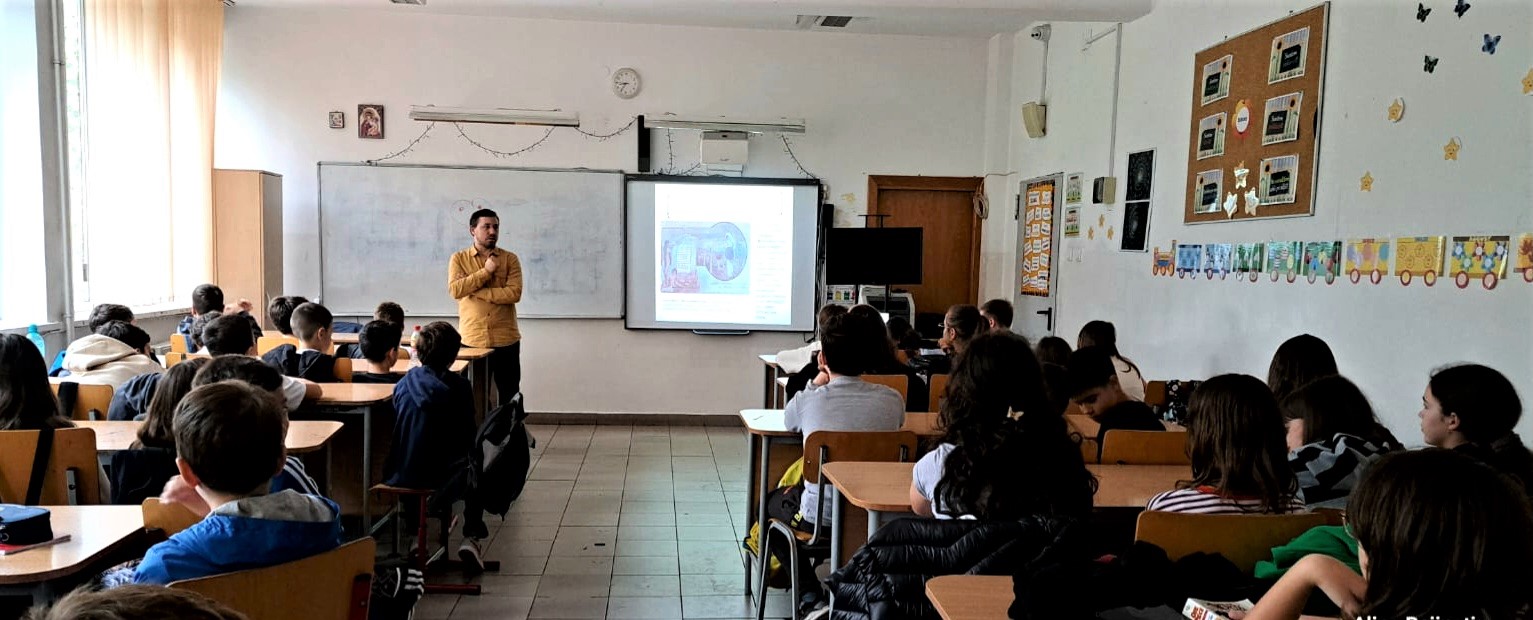 Reprezentantul Oficiului le-a vorbit elevilor din cadrul a șase clase despre domeniul cultul eroilor în România și despre importanța existenței în țara noastră a unei instituții care acționează permanent pentru conservarea monumentelor și necropolelor dedicate militarilor români care au căzut la datorie pentru Patrie.
