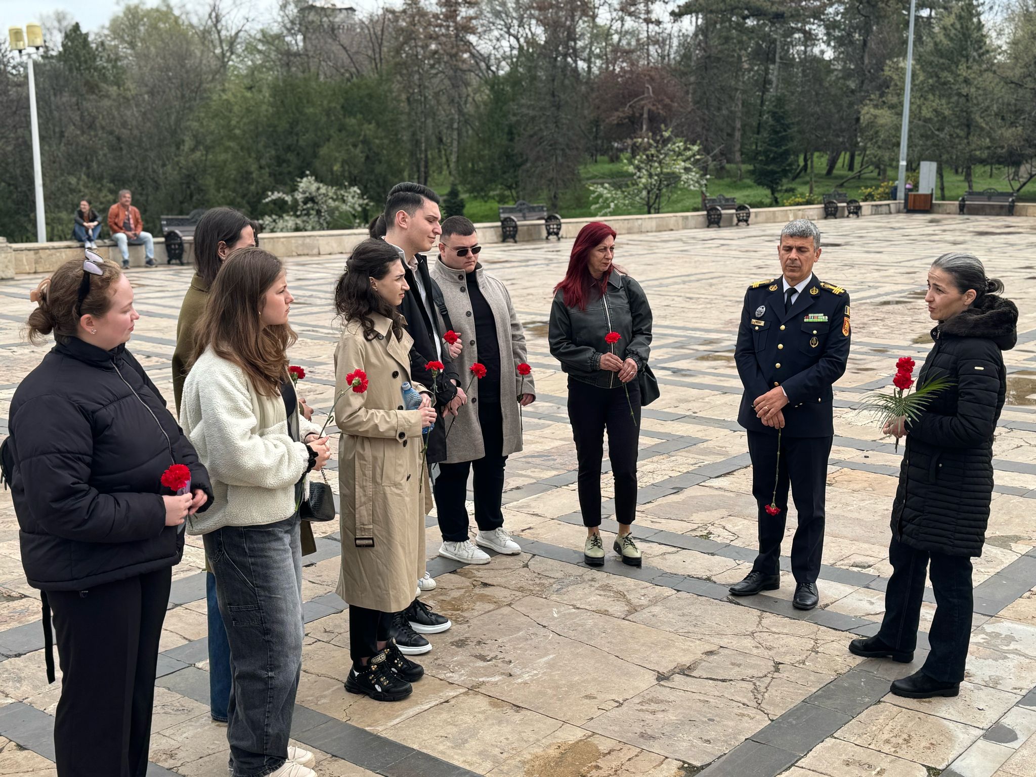 Activitatea a continuat cu o vizită la Mormântul Ostașului Necunoscut și la Memorialul Eroilor Neamului din Parcul Carol I, două dintre cele mai semnificative obiective comemorative și repere istorice din Capitală. În semn de recunoștință față de sacrificiul eroilor români căzuți la datorie pentru apărarea Patriei, studenții au depus flori la Mormântul Eroului Necunoscut ,,săvârșit din viață în jertfa pentru unitatea neamului românesc’’.