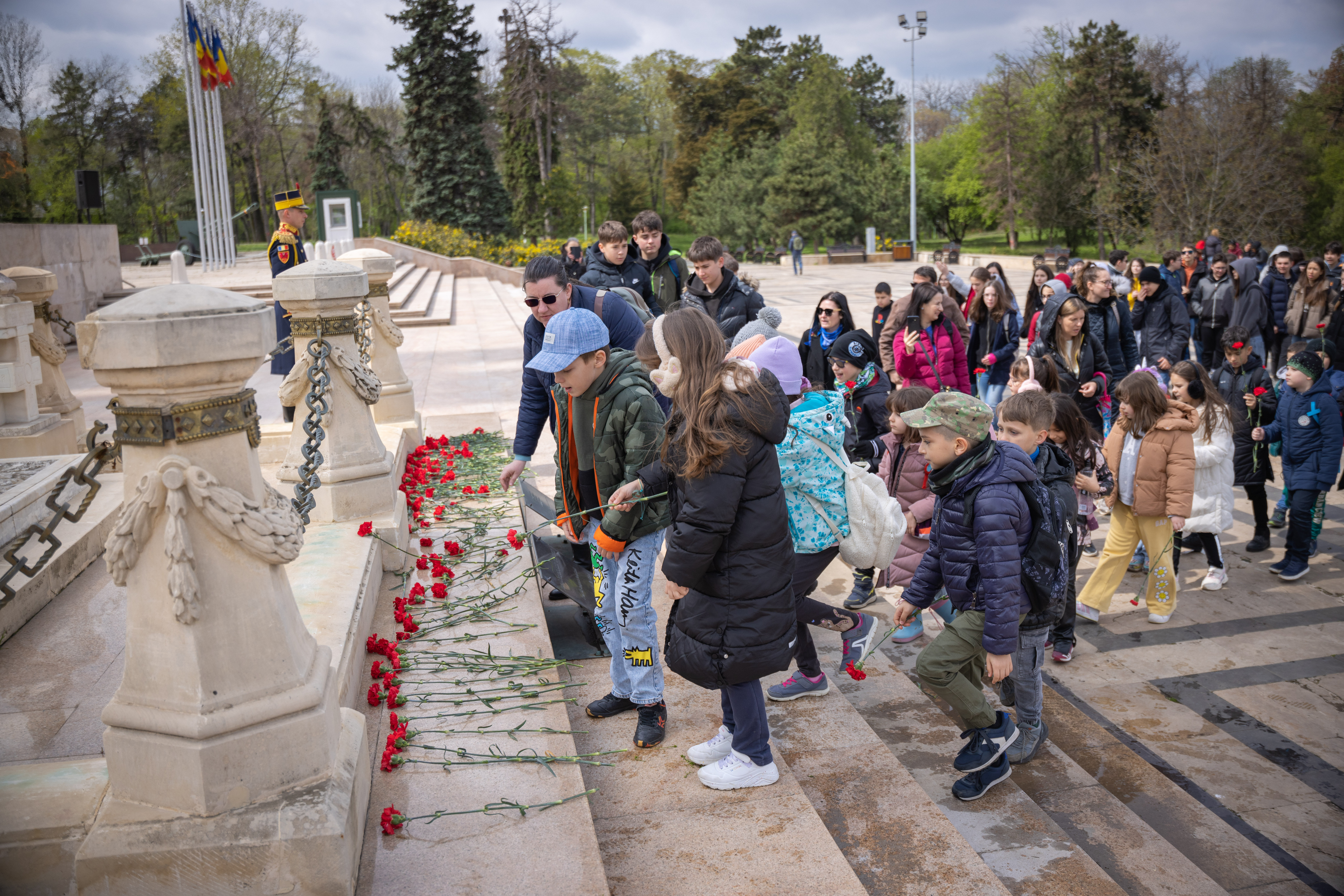 Cu acest prilej, elevii prezenți la activitate, încărcați de emoție, au depus flori pe catafalcul Mormântului Ostașului Necunoscut, în memoria tuturor eroilor României pe care îi simbolizează Eroul Necunoscut, desemnat ca atare la data de 14 mai 1923 de către elevul militar Amilcar Săndulescu, dintre rămășițele pământești aparținând celor zece soldați anonimi, exhumate anterior de pe fostele câmpuri de luptă ale Primului Război Mondial.