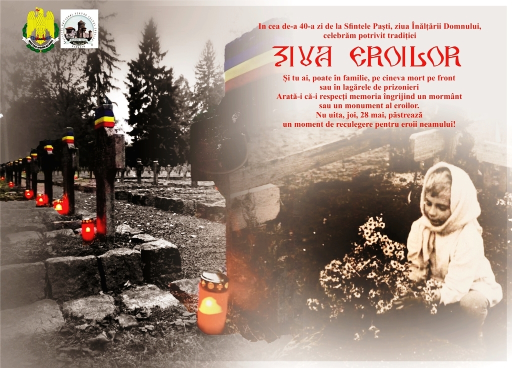 În fiecare an, în a patruzecea zi de la Sfintele Paşti, românii sărbătoresc Ziua Eroilor, eveniment prin care sunt comemoraţi toţi eroii neamului care, prin sacrificiul lor, au făcut posibilă dobândirea şi păstrarea independenţei naţionale, a unităţii statale, apărarea suveranităţii naţionale, menţinerea ordinii de drept şi a siguranţei naţionale.
