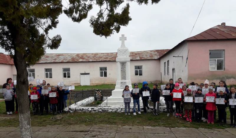 Scurta prezentare a obiectivului comemorativ – ridicat în anul 1937, în memoria eroilor căzuți pe câmpul de luptă pentru întregirea neamului – a fost urmată de activitățile de îngrijire care au constat în lucrări de curățare a monumentului și a spațiului adiacent, executate cu multă sârguință și dăruire de către copii.