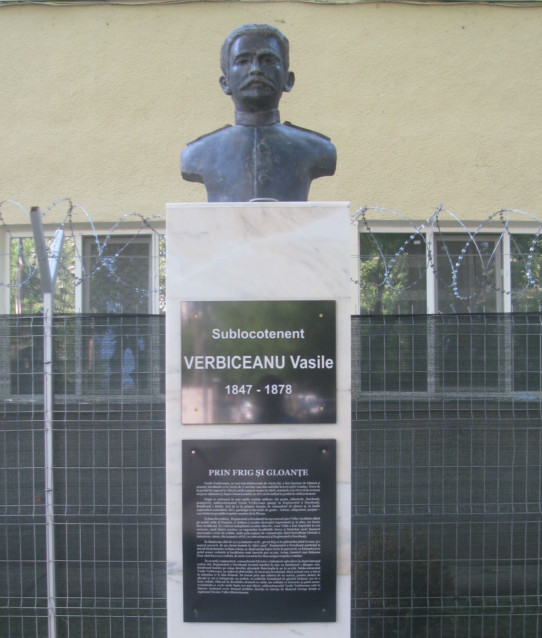 Sublocotenentul Vasile Verbiceanu s-a născut în anul 1847 în satul Cerneți din județul Mehedinți. Rămas orfan, a intrat voluntar în armată la vârsta de 17 ani în Batalionul 1 Geniu. A fost avansat la gradul caporal (1865), segent-major (1868), sergent-adjutant (1870) și sublocotenent (1871). Pentru că nu erau funcții disponibile în geniu, sublocotenentul Verbiceanu este numit comandant de pluton în Regimentul 3 Infanterie. În februarie 1875 a fost mutat la Regimentul 9 Dorobanți primind comanda Plutonului 2 din Compania 3, Batalionul 1. Cu această unitate a participat la Războiul pentru obținerea Independenței de stat a României.