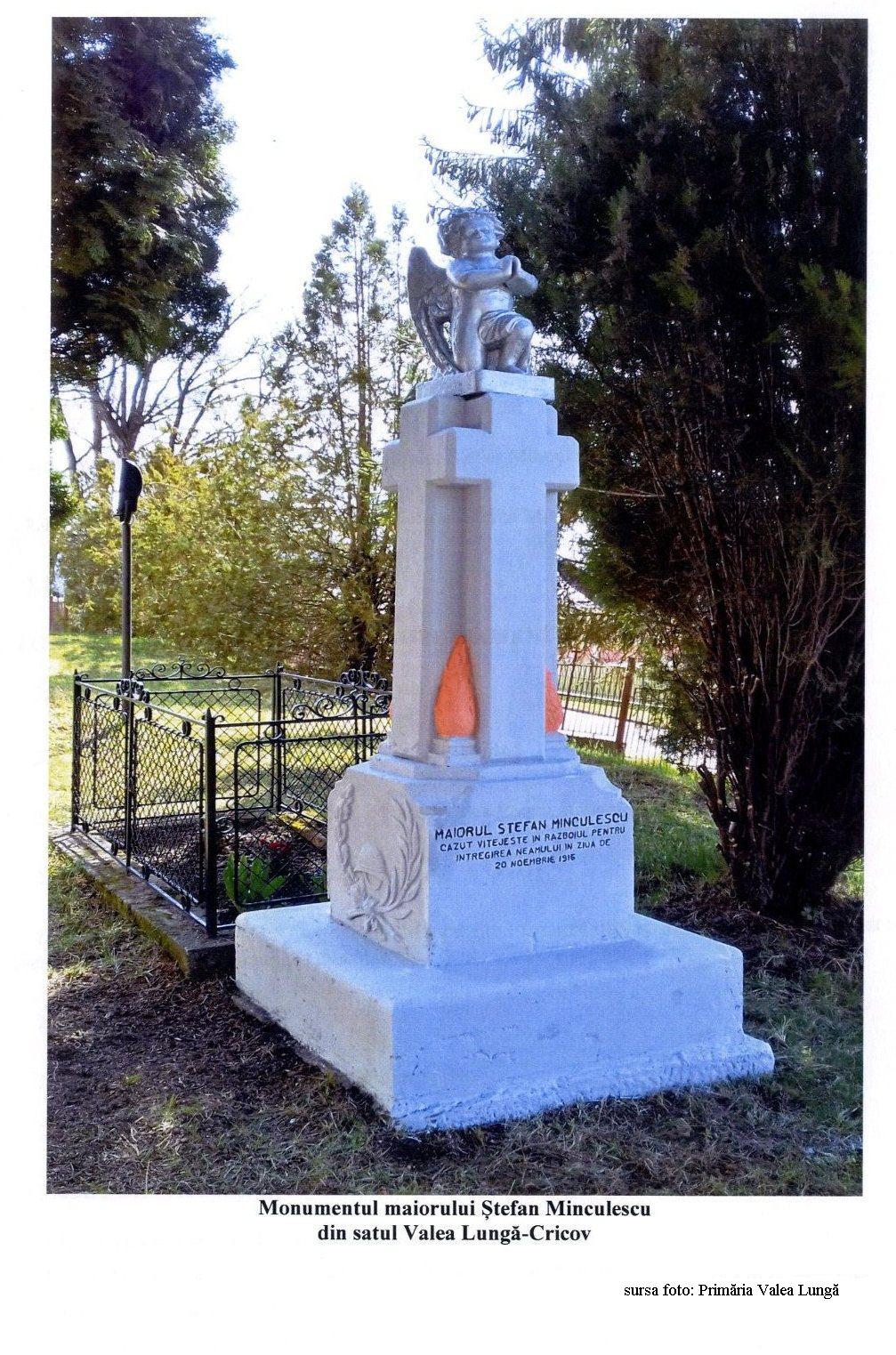 În ziua de 20 noiembrie 1916, un pluton condus de maiorul Ştefan Minculescu a fost atacat de trupele germane la intrarea în comuna Valea Lungă, judeţul Dâmboviţa. În această ciocnire sângeroasă şi-a pierdut viaţa maiorul Minculescu.
