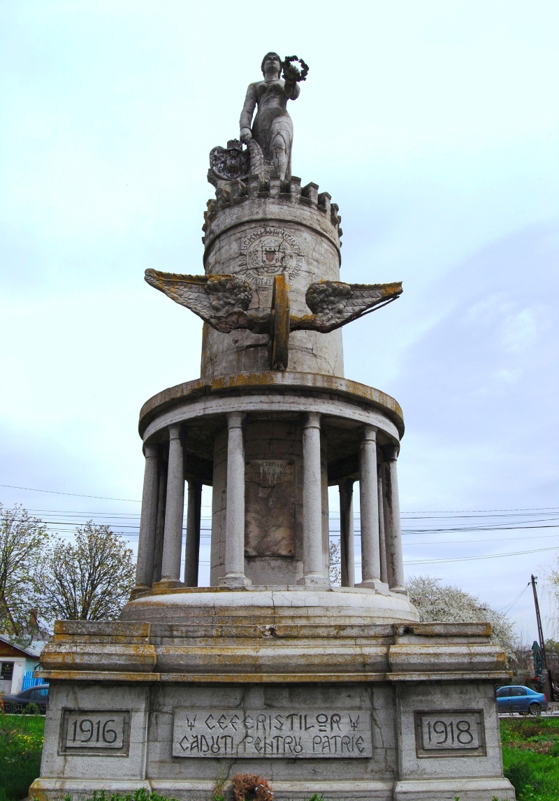 În România, în perioada interbelică, în semn de omagiu adus memoriei celor care şi-au sacrificat viaţa în Primul Război Mondial, au fost realizate numeroase monumente comemorative, unul dintre acestea fiind amplasat în vecinătatea staţiei C.F.R. Tecuci-Sud, din municipiul Tecuci, judeţul Galaţi. Opera comemorativă de război a fost ridicată prin grija unui comitet de iniţiativă, după un proiect conceput la Şcoala Superioară de Arte şi Meserii din Bucureşti.