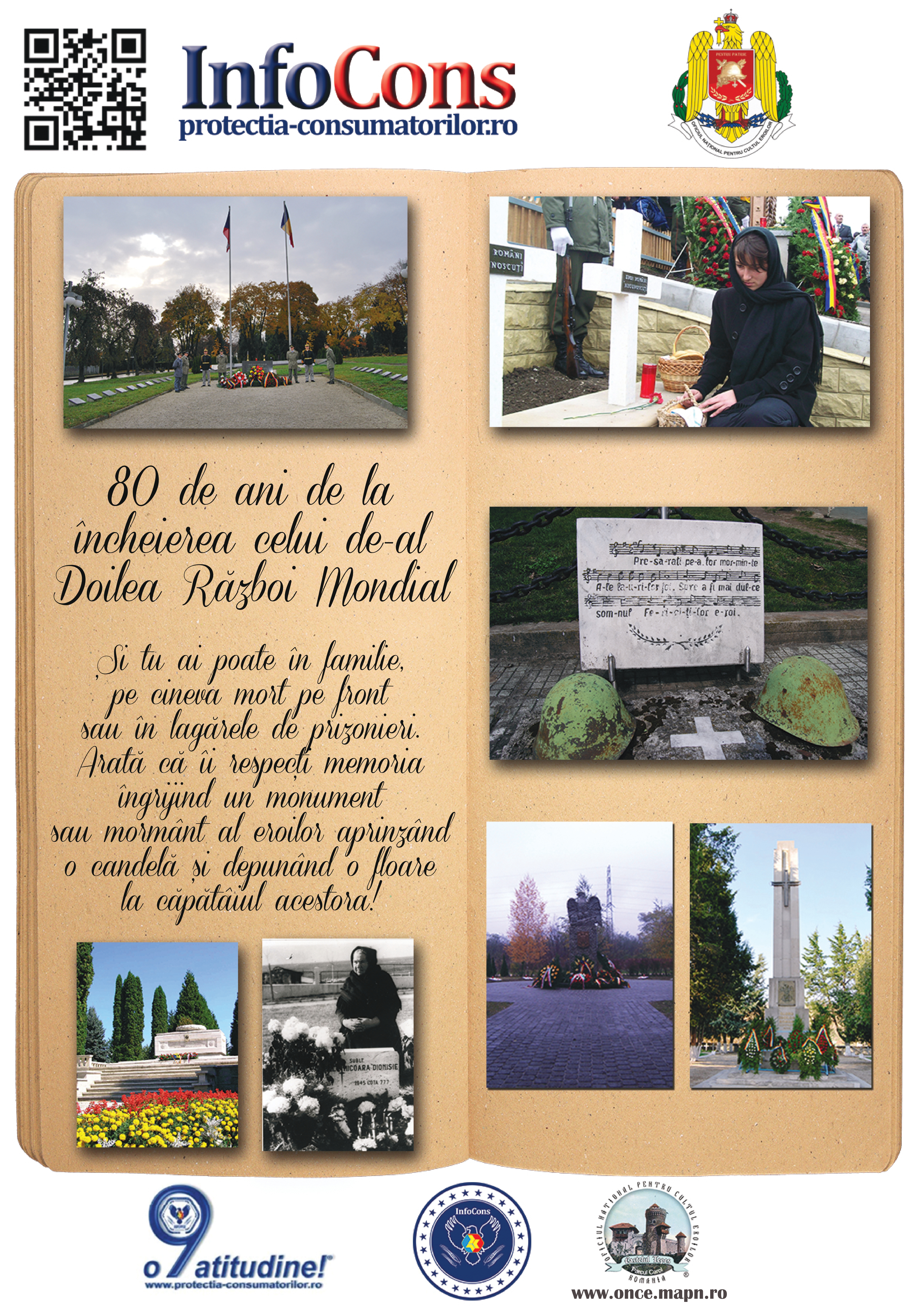 De asemenea, 80 de ani de la încheierea celei de-a doua conflagrații mondiale reprezintă un moment cu importantă semnificație istorică și ne oferă prilejul de a cinsti memoria eroilor români căzuţi la datorie, atât în ţară, cât şi în străinătate, şi de a face cunoscute faptele de vitejie şi jertfa acestora în slujba Patriei.
