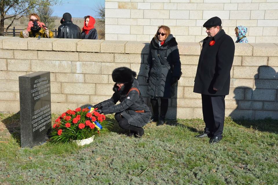 "Aici odihnesc militarii români căzuți la Stalingrad în cel de Al Doilea Război Mondial".