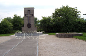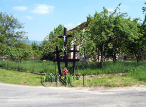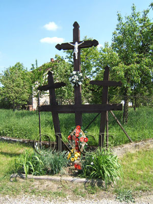 Situată la marginea localității, la o intersecție de drumuri. Pe un postament din ciment este o cruce centrală încadrată de alte două cruci de dimensiuni mai mici. Pe placa orizontală, comună celor trei cruci, este scris în limba română: „Trecătorule, oprește-te un minut și amintește-ți de eroii români căzuți în luptele pentru eliberarea Cehoslovaciei – aprilie 1945“.