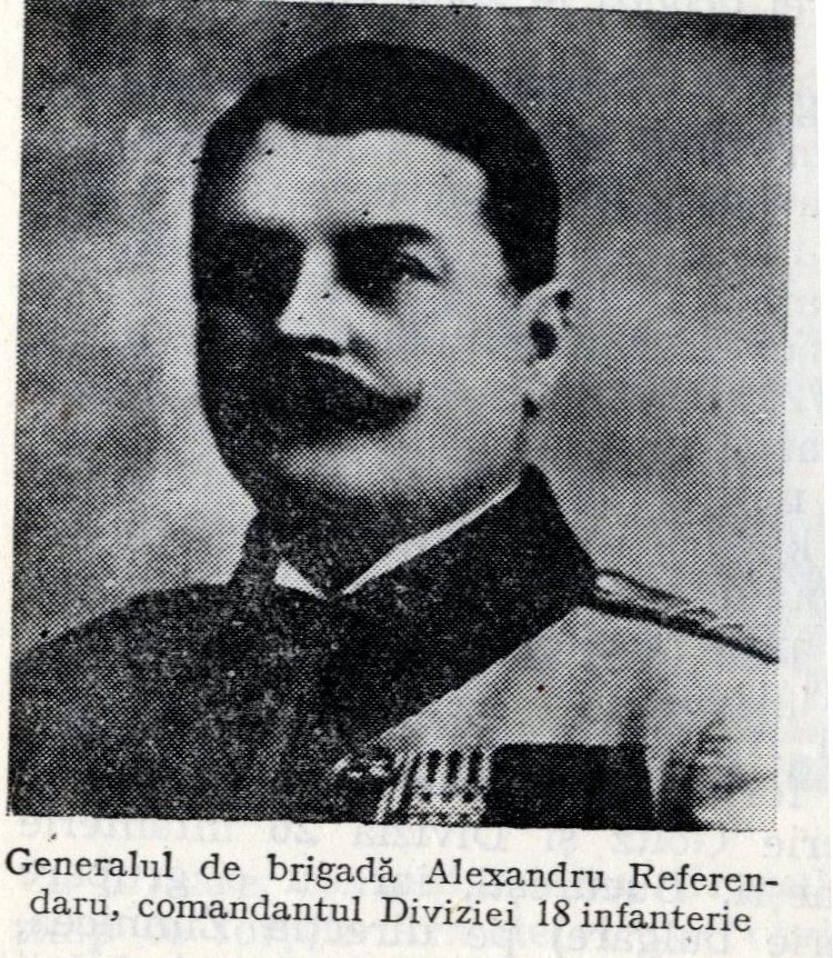 În anul 1917, generalul Referendaru a participt la Bătălia de la Mărășești (6-19 august 1917), unde Armata 1 Română a pierdut 27.410 de militari, din care 5.125 au fost morți (125 de ofițeri și 5.000 de soldați).