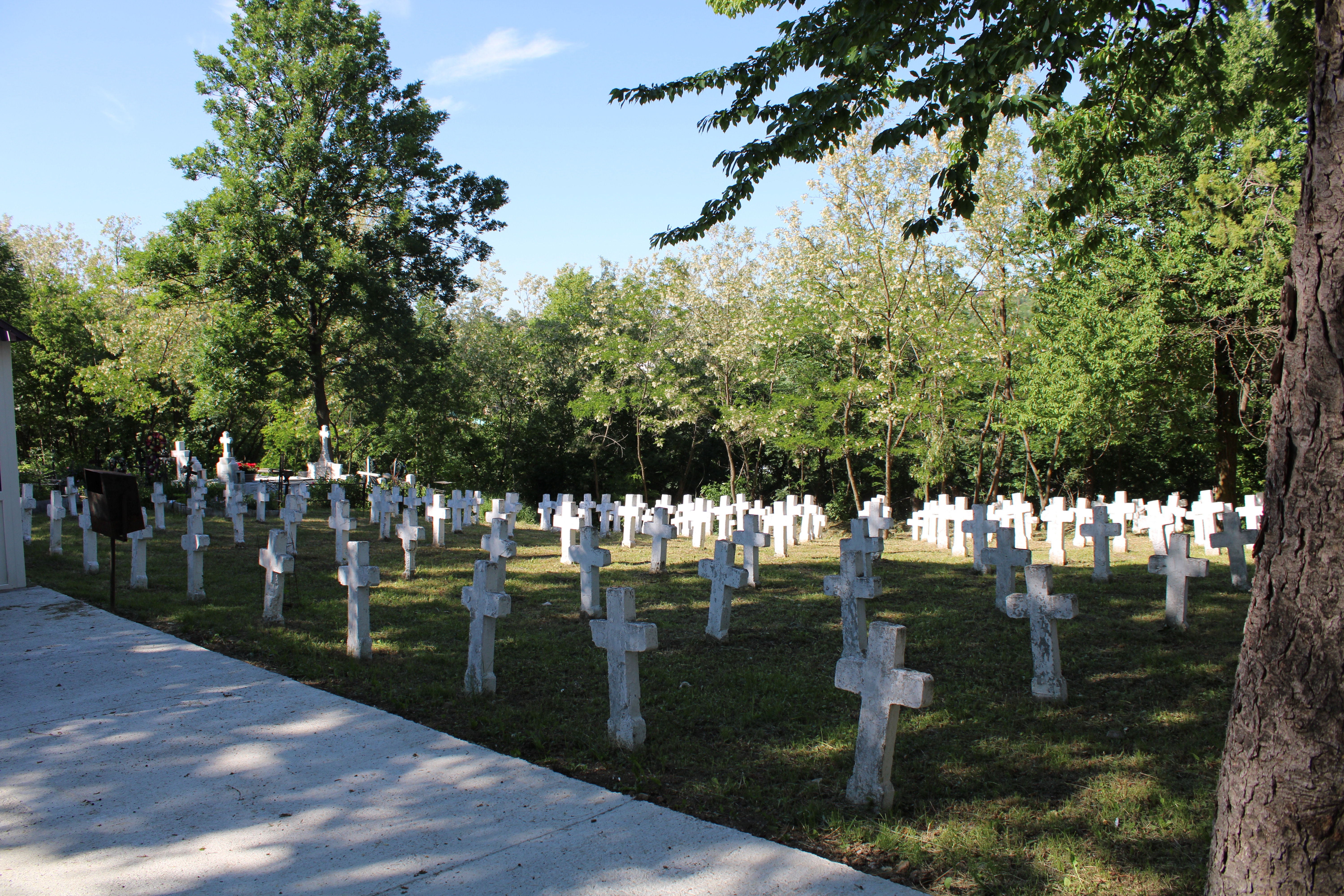 În parcelele acestora, amenajate de către grupurile 18, 19 şi 92 Vânători Munte, precum şi de către Regimentul 14 Infanterie, se aflau mormintele a 499 eroi români (262 identificaţi şi 237 neidentificaţi), decedaţi în lunile aprilie-mai ale anului 1944.