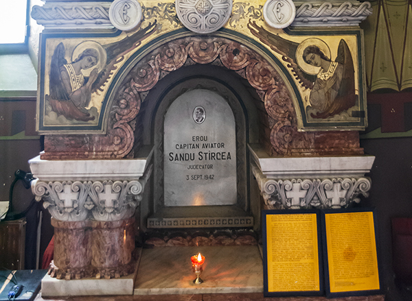 În prezent, după ce se trece de ușa monumentală din lemn a Bisericii Sf. Visarion, o candelă a recunoștinței îndreaptă privirile spre o nișă din latura dreaptă, iar pe o placă din marmură albă se face trimitere la aviatorul pe care urmașii nu l-au uitat: EROU / CĂ‚PITAN AVIATOR / SANDU STÎRCEA / JUDECĂ‚TOR / 3 SEPT. 1942