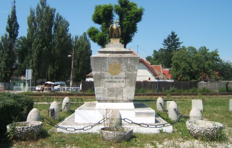 Monumentul central al cimitirului a fost conceput în forma unei urne funerare, având în terminație un vultur, simbolul avântului în luptă.