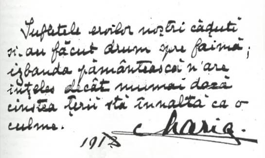 În mersul ei ascendent, cu puteri neîncetat sporite, patria își va îndeplini marea ei misiune în viața de frăție și de civilizație a Dunărei și a Orientului.
